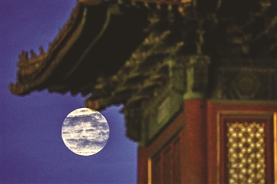这是10月6日在北京故宫角楼附近拍摄的月亮。