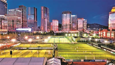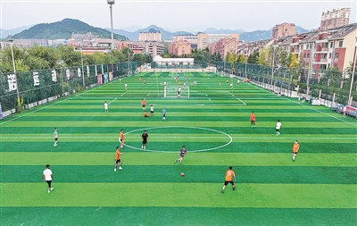 ■大枣园社区休闲文化广场的五人制足球场,适合孩子们切磋球技。 杨志文 摄