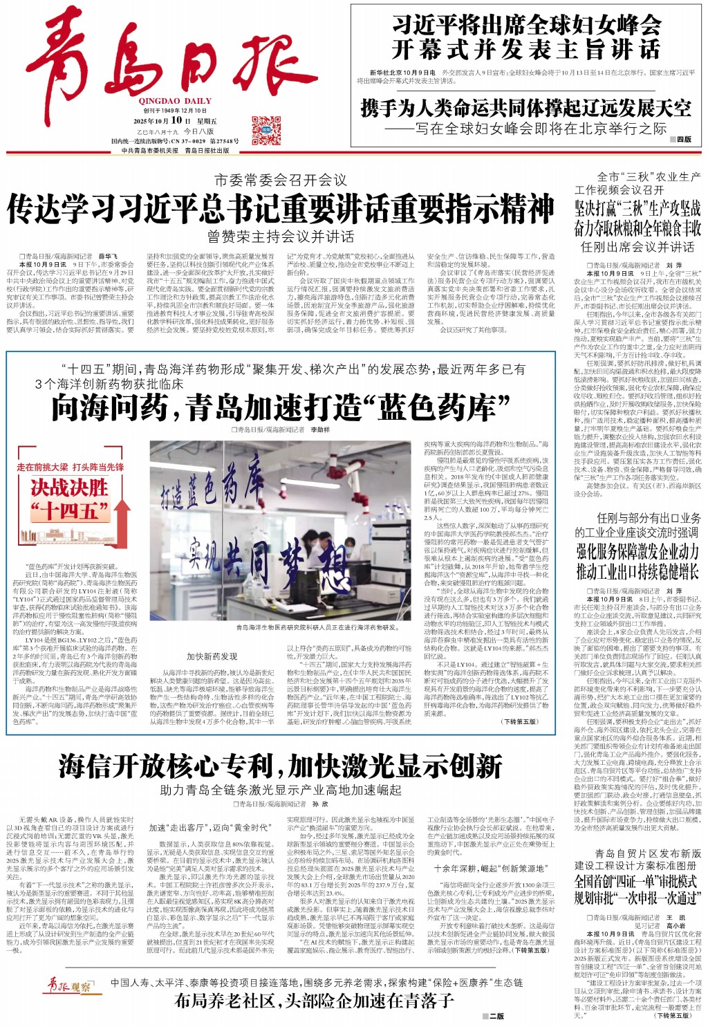01 首版 02 要闻 03 青报聚焦 04 要闻 05 国内 06 专版 07 幸福市北 08 幸福市北