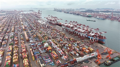 ■10月13日在山东港口青岛港拍摄的外贸集装箱码头(无人机照片)。 新华社照片