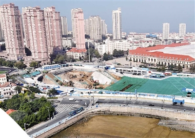 ■青岛湾地下停车场项目有序推进,建成后将极大缓解青岛火车站周边区域的停车压力。 梁 超 摄