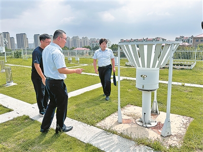 ▲农业银行青岛即墨分行相关负责人参观即墨区气象局气象观测仪器。