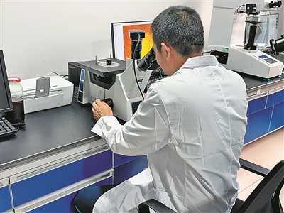青岛华庆海洋科技有限公司负责人正在观测样本。