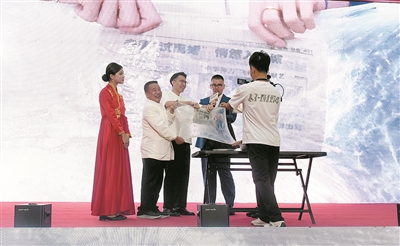 ■烹饪大师刘泉(左二)现场展示破吉尼斯世界纪录的绝活“手拉海参”。 崔冬妮 摄