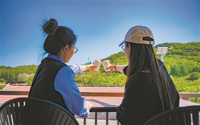 ■两名游客在杨家山里“村咖”打卡。 邢志峰 摄