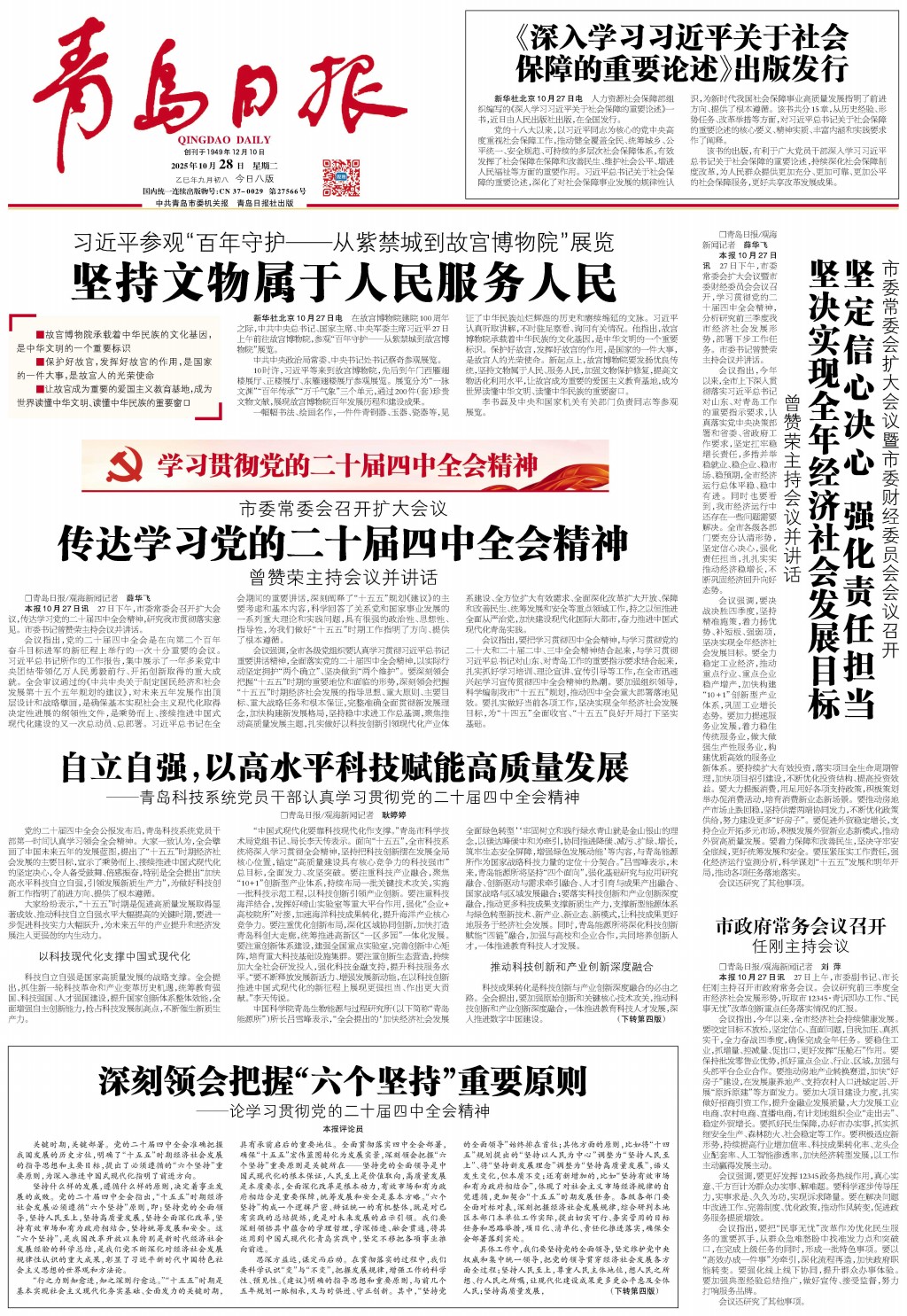 传达学习党的二十届四中全会精神