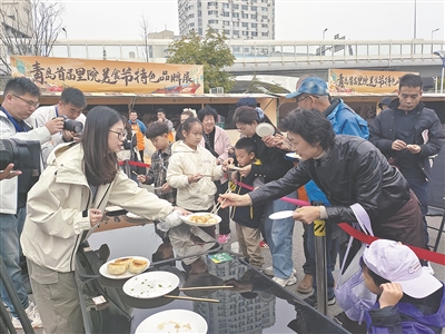 ①百姓厨神大赛结束后,围观市民纷纷品尝美食,向获奖者“取经”。 马 艳 摄