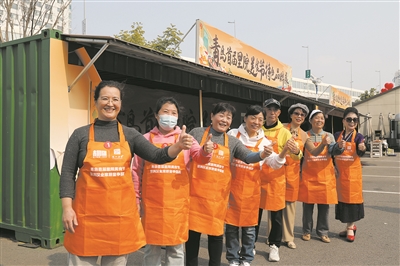 ③市北居民兴致勃勃参加百姓厨神烙饼大赛。