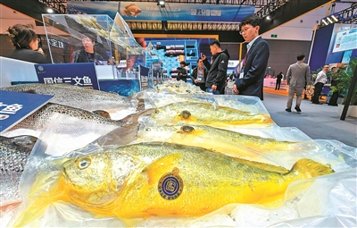 ■来自国信深远海养殖工船的多种水产品亮相渔博会。 韩 星 摄
