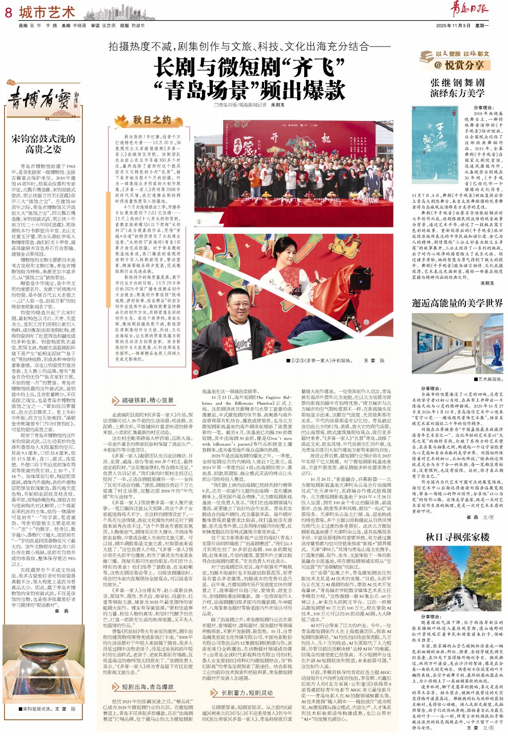 01 首版 02 要闻 03 青报聚焦 04 国内 05 专版 06 城事 07 艺术青岛 08 城市艺术