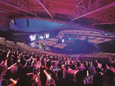 今年青岛大型演出市场迎来“爆发式增长”,海量客流带热“票根经济”。图为周深演唱会现场。