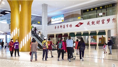 ⑤市民逛服装市场。