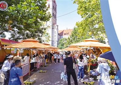 ■市南区在海誓山盟广场举办创业市集。