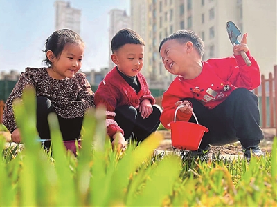 “豆宝小院儿”成为“活课堂”,孩子们在真实情境中实际操作、亲身体验,不仅提升了观察与动手能力,也感受到自然馈赠的珍贵,从而实现自我、自然、社会的深度联结,获得充实而全面的发展。