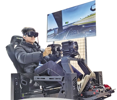 ■虚实无界·创享未来产业展上,观众体验MR沉浸式赛车模拟。