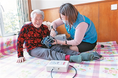 ■长护工作人员上门为老人服务。