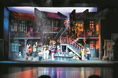 ■11月25日晚7点30分,第十八届“文华剧目奖”获奖作品话剧《烟火人间》在青岛大剧院歌剧厅上演。图为《烟火人间》演出现场。 王 雷 摄