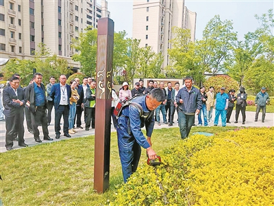 今年4月,城阳区组织园艺师走进社区,对辖区40余家居住小区物业园林养护人员开展绿化养护专题培训。培训采取“理论+实操”模式,针对小区园艺师日常工作中的核心痛点,量身定制课程内容,覆盖修剪造型、病虫害识别、生态防治技术、植物健康管理等全流程技能。