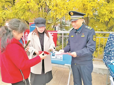 ①综合执法人员进社区开展宣传。