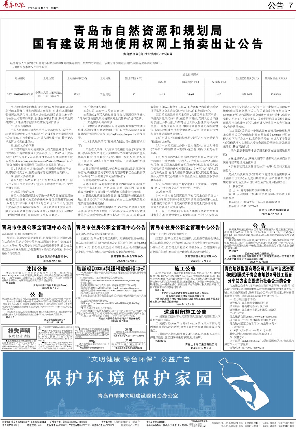 青岛市自然资源和规划局国有建设用地使用权网上拍卖出让公告