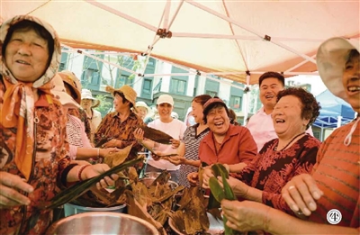 ④西海岸新区“银龄星火”志愿服务团队包粽子并分发给社区80岁以上孤寡老人。