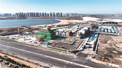 在如意湖生态修复治理项目北岸片区,整齐的绿化林沿湖舒展,生态景观已初具雏形;隔湖相望的南岸片区,工人正在进行广场地面铺装作业。如意湖生态修复治理是上合示范区生态建设的重点项目,其中北岸片区约88万平方米,建设内容包括湿地植物群落恢复与生物多样性提升、湿地生态环境和栖息地条件改善等,通过对现状水系、植被、海岸、土壤、动物生境的整合与修复,构建和谐共生的自然生态,为区域生态安全与人居环境改善提供示范。