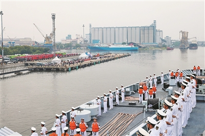 ■12月7日,正在执行远海综合实习任务的中国海军989编队抵达印度尼西亚雅加达丹戎不碌港,开始对印度尼西亚进行为期4天的友好访问。 新华社照片