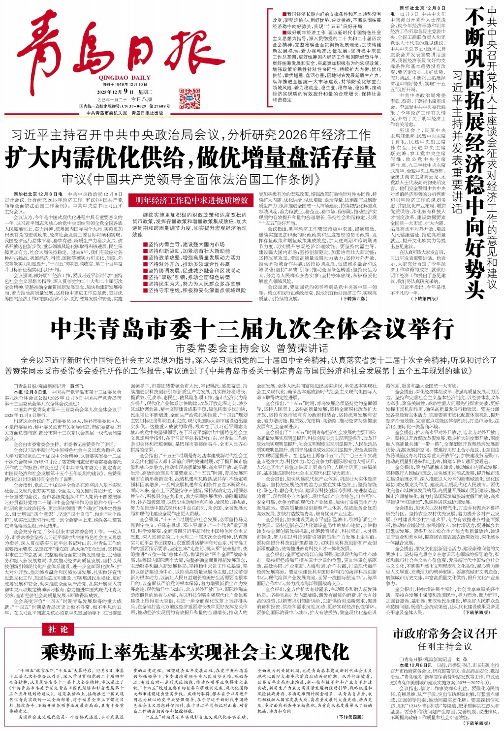 中共青岛市委十三届九次全体会议举行