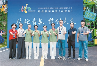 ▲青岛市城阳区职教中心学校在2025世界职业院校技能大赛纺织服装赛道获金奖。
