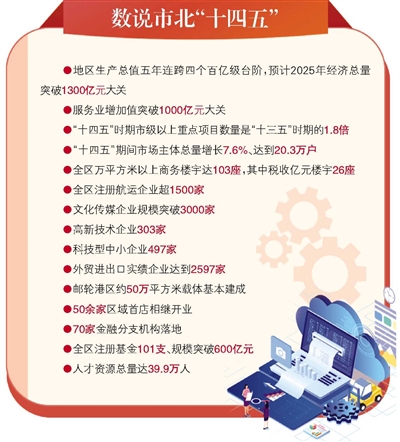 “十四五”时期,面对国际国内环境的深刻复杂变化与诸多风险挑战,市北区凝心聚力、锐意进取,交出了一份经济稳健增长、结构持续优化、活力不断迸发、民生显著改善的高质量发展答卷——