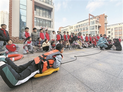 安全是校园不可逾越的生命线,应急技能则是伴随学生一生的“必修课”。自2016年起,青岛市将中小学生安全应急体验活动纳入“市办实事”项目,积极探索并大力推行情景式、体验式安全教育模式,让学生在身临其境的体验中夯实安全知识、提升应急能力。市、区(市)两级财政每年投入600万元,依托应急安全体验教育基地,每年组织10万余名学生参与培训,借助安全体验馆、移动体验馆、虚拟科技等实景环境,让学生掌握防火、防交通意外、防溺水等安全知识,以及应急逃生、自救互救技能。2021年,《青岛市中小学(幼儿园)生存教育指导意见》出台,构建起师、生、家、校、社共同参与的生存教育格局。