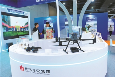 中青建安集团的展位上,展示了不少装配式装修的构件,有用于地铁建设的墙面装配式龙骨,也有用于篮球馆的固定悬浮式运动木地板,还有可多场景应用的装配式饰面板等,这些构件的应用都极大提高了施工效率。荣华建设集团以“智能建造赋能,绿色科技筑家”为主题,系统展示了智能巡检无人机、混合现实智能头戴设备、“劲构”装配式地下车库、“光储直柔”微电网及超低能耗技术体系,展现了智能、绿色与工业化深度融合的建造新模式。