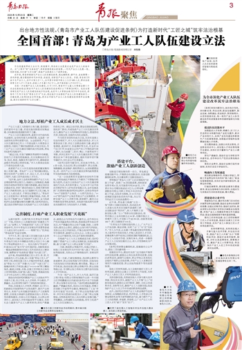 “这一立法成果具有显著的首创性和引领性,为其他地区开展相关工作提供了可借鉴的经验与范例,在地方立法推动产业工人队伍建设领域先行先试,具有标杆意义。”山东大学习近平法治思想研究中心研究员宋保振认为,全市各级各部门在贯彻实施《条例》的过程中,应结合青岛市“10+1”创新型产业体系、十大现代服务业、“4+4+2”现代海洋产业体系等重点产业发展需求,不断完善产业工人思想引领、素质提升、建功立业和维权服务等机制体系,为推进中国式现代化青岛实践提供有力的技能和人才保障。