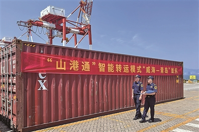 “山港通”智能转运模式运行,在全国率先实现港口间多类型货物智能转运监管新突破;青岛连续5年以综合得分第一名成绩获评海运口岸集装箱货物跨境贸易营商环境测评“最优等次”。