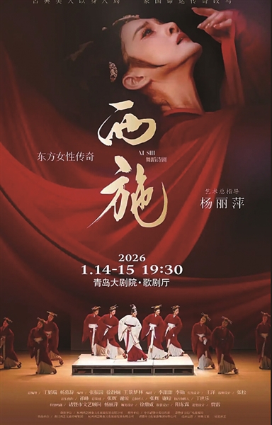 《西施》由杨丽萍担任艺术总指导,用6个篇章展现西施从浣纱女到肩负家国大义的传奇女性的蜕变。剧中代表舞段“响屐舞”近期火爆出圈:西施与众宫女脚蹬木屐、裙缀小铃,交织成一支欢快的交响曲。该剧以舞蹈展现吴越之战的恢弘景象,以现代视角下挖掘西施这一古典角色的现代意义,深入探讨女性的成长与蜕变。吴越风情的造型、富含人文寓意的舞蹈和多媒体视效结合,让“西施”重现在观众眼前。2026年1月14日、15日,青岛大剧院将推出这部作品。 米荆玉
