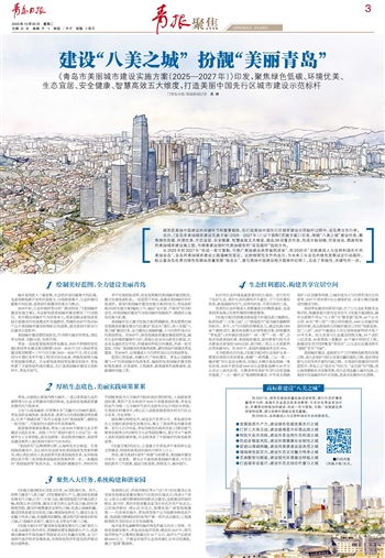近日,《青岛市美丽城市建设实施方案(2025—2027年)》(以下简称《实施方案》)印发,围绕“八美之城”建设任务,聚焦绿色低碳、环境优美、生态宜居、安全健康、智慧高效五大维度,提出36项重点任务,形成目标明确、任务突出、措施有效的美丽城市建设施工图,为探索建设新时代美丽城市的“青岛路径”指明方向。
