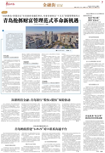 青岛银行高度重视科技金融大文章建设,从总行战略层面重塑科技金融的顶层设计,推出“全生命周期、全方位产品”的“综合化科技金融服务体系”,同时与省市区各级政府科技主管部门密切联动,建立常态化的沟通协调机制,搭建融合商业银行、投行券商、担保公司、数据服务的“科技金融朋友圈”,拓宽科技金融专业化服务渠道,合力解决科创企业的资金难题,取得良好成效。截至2025年三季度末,青岛银行科技金融贷款余额突破300亿元,较上年末增长近18%,2022年以来,已累计为全省27%的“专精特新”企业提供服务。