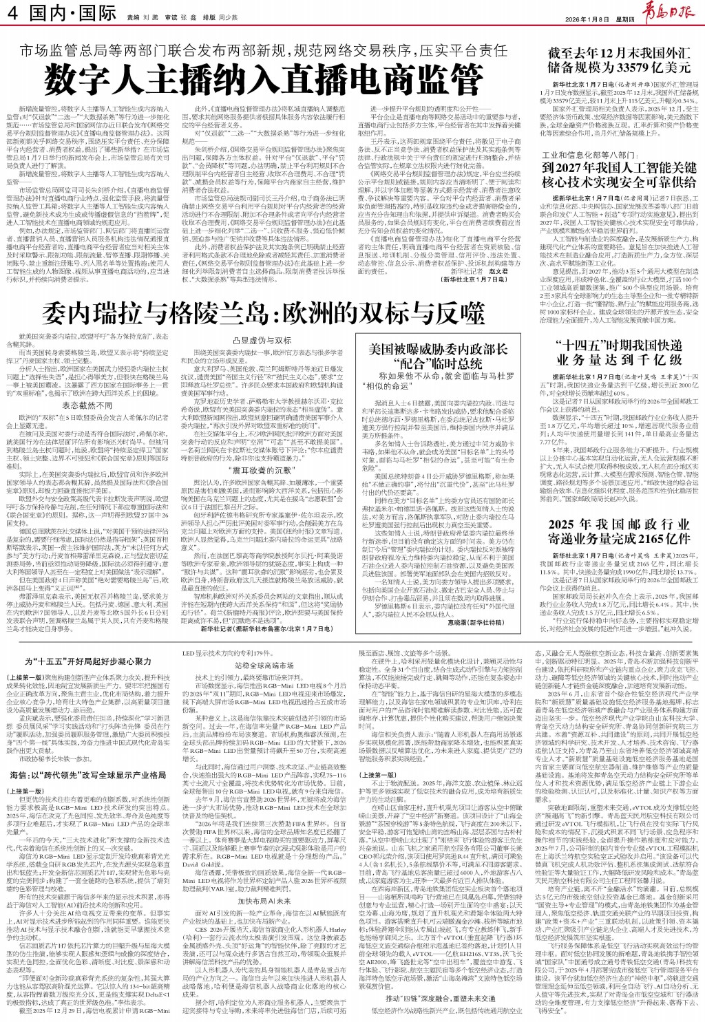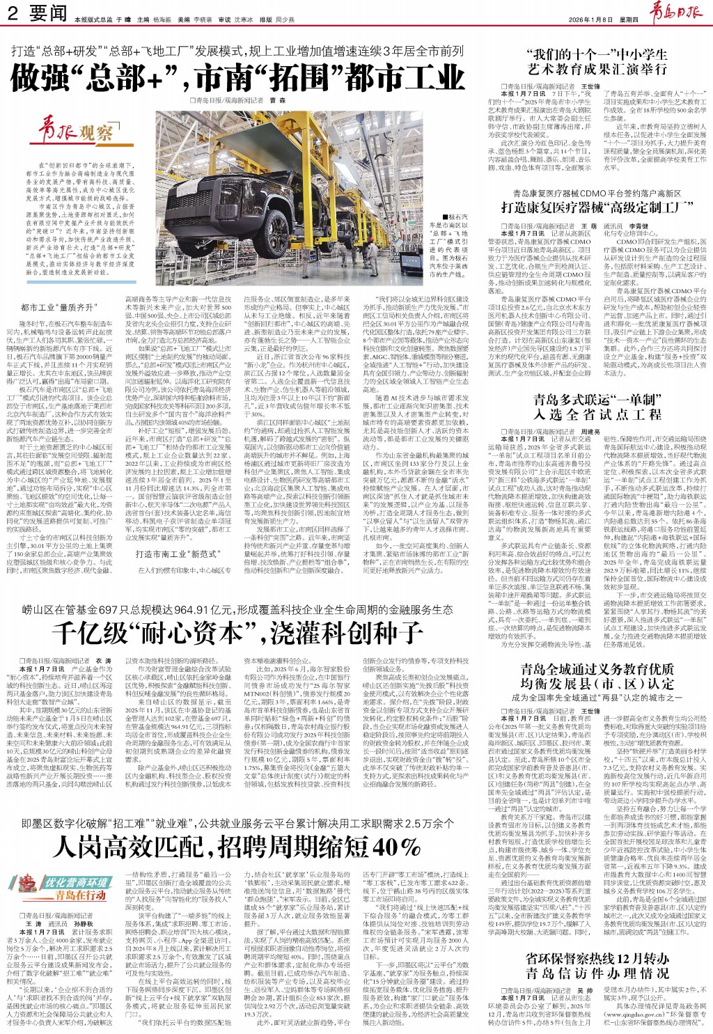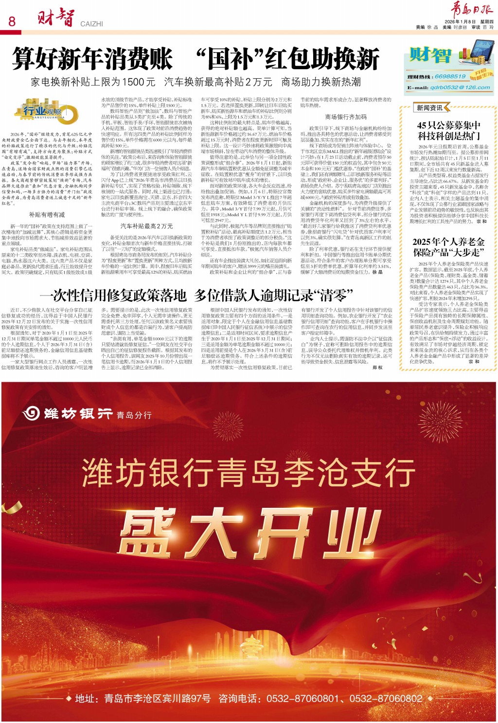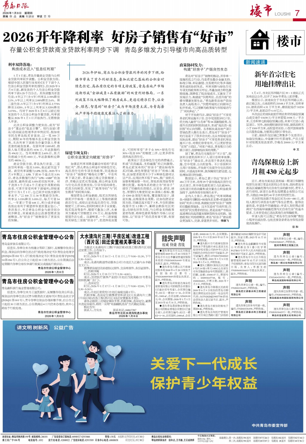 01 首版 02 要闻 03 青报聚焦 04 国内·国际 05 城事·专题 06 幸福市北 07 楼市 08 财智