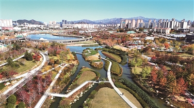 张村河生态公园内,绿道与河流相依相伴。 梁 超 摄