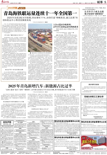 作为“一带一路”新亚欧大陆桥经济走廊主要节点城市和海上合作战略支点,青岛充分发挥港口优势与铁路资源,加快构建高效衔接、枢纽快速运转、信息互联共享、装备标准专业、服务一体对接的多式联运组织体系,依托“内陆港+海铁联运+国际班列”的立体化物流网络,打造“物畅其流、通江达海”的国际航运中心物流发展新高地。2025年,青岛海铁联运量完成282.9万标箱,同比增长11%,连续十一年位居全国第一。