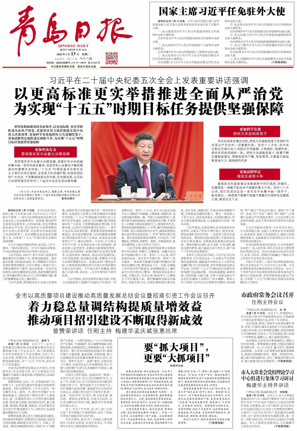 01 首版 02 要闻 03 青报聚焦 04 国内·国际 05 城事 06 理论周刊 07 金融街 08 健康