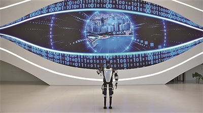 ■乐聚智家“夸父机器人”在青岛人工智能创新应用展示中心担任“导览员”。