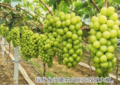 现代化设施农业阳光玫瑰大棚。