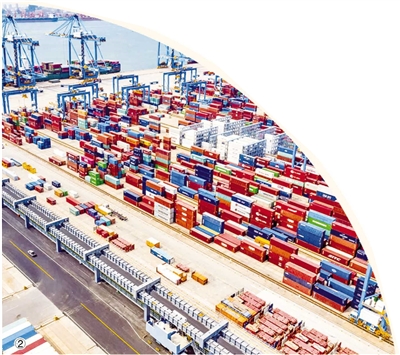 ②繁忙的青岛港前湾港区自动化码头。