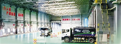 ▲生活垃圾由封闭垃圾运输车送到处理厂。