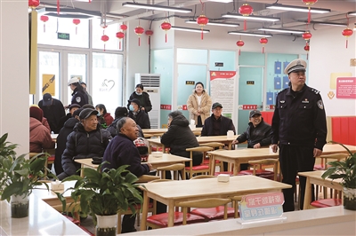如今,幸福食堂跳出了“打饭窗口”的单一标签,不再仅仅满足单一的饮食属性,还增加了更多的社交元素。每天上午开餐前半小时是“幸福食堂+”小课堂。反诈防骗、养生科普、象棋教学、理财指南……天天有新主题,老人们一边等着开饭,一边听着课、聊着天,时光悄然变得饱满。