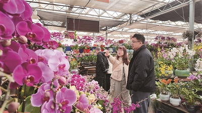 年宵花,特指春节前后上市销售、用于装点节日氛围且寓意吉祥的各类花卉,如今已成为市民年货清单中不可或缺的一部分。其中,蝴蝶兰以其花期长、花姿饱满以及“花开富贵”等美好寓意,深受消费者青睐。“蝴蝶兰是每年年宵花市场的‘销量王’,很多家庭都将其视为必备的年节装饰。经典品种如‘大辣椒’‘粉冠军’等畅销不衰,新品种‘蒙彼利埃’‘小橘灯’今年也格外受欢迎。”商户曲洪帅介绍,今年蝴蝶兰价格与往年基本持平,根据品种不同,单株售价在20至30元之间。