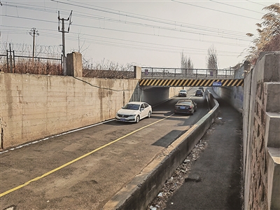 据移风店镇政府工作人员介绍,这处铁路桥洞始建于2002年11月,原设两条车道,由青岛公务段负责管护,后期交由移风店镇、蓝村街道两地管理。由于该处地势低洼易积水,加之大车频繁通行碾压,造成路面损坏。2022年,移风店镇向铁路相关部门报批施工,仅被允许抬高、翻新东侧车道,并废弃西侧车道,用于降雨时排水。此后,桥下原两车道变为单车道,过往车辆需交替通行,但两车道之间的护栏多次由于事故等原因损坏缺失,给来往车辆带来安全隐患。