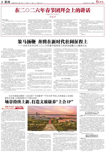 在中华文化里,马是刚健雄壮、自强不息的象征,昭示着行稳致远、兴旺发达的前景。丙午马年,希望全国各族人民更加紧密地团结在党中央周围,坚定必胜信心,保持昂扬斗志,在中国式现代化新征程上策马扬鞭、勇往直前,共同开创更加美好的未来。