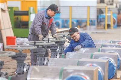 ②2月24日,在位于李沧区的青岛电站阀门有限公司,工人在生产车间内赶制阀门订单。